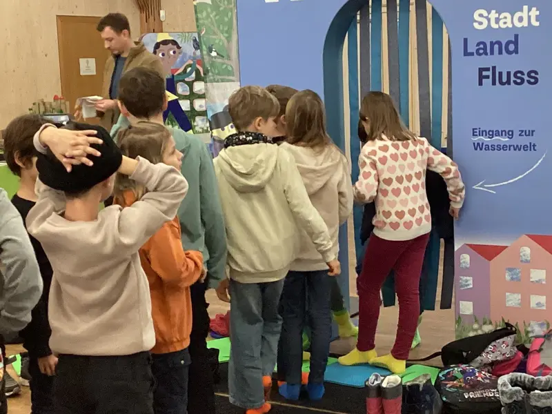 beim Raumspiel „Wasser in Stadt, Land, Fluss“, einer Wanderausstellung des Bayerischen Landesamtes für Umwelt