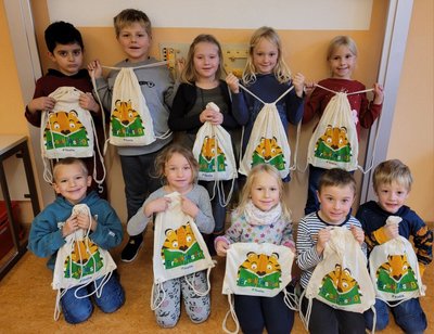 Die Erstklässler erhielten von der Buchhandlung Thalia ein Lesestarterpaket