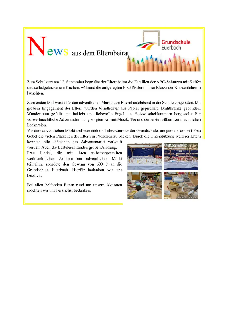 An dieser Stelle wollen wir uns bei den helfenden Eltern am Eisfest und Adventsmarkt, sowie bei der Grundschule Euerbach und der Gemeinde Euerbach für die außerordentlich gute Zusammenarbeit und Unterstützung bedanken.