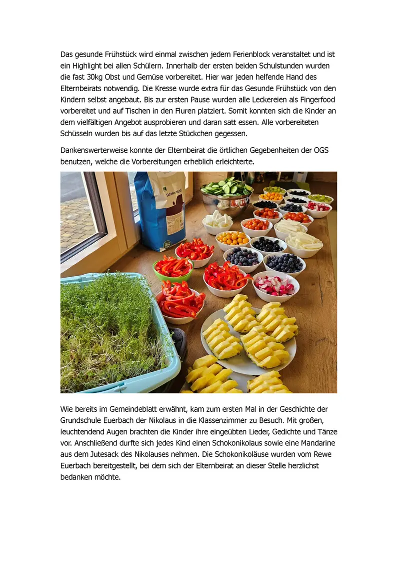 Ende November findet dann das gesunde Frühstück für die Schüler von der ersten bis zur vierten Klasse statt.